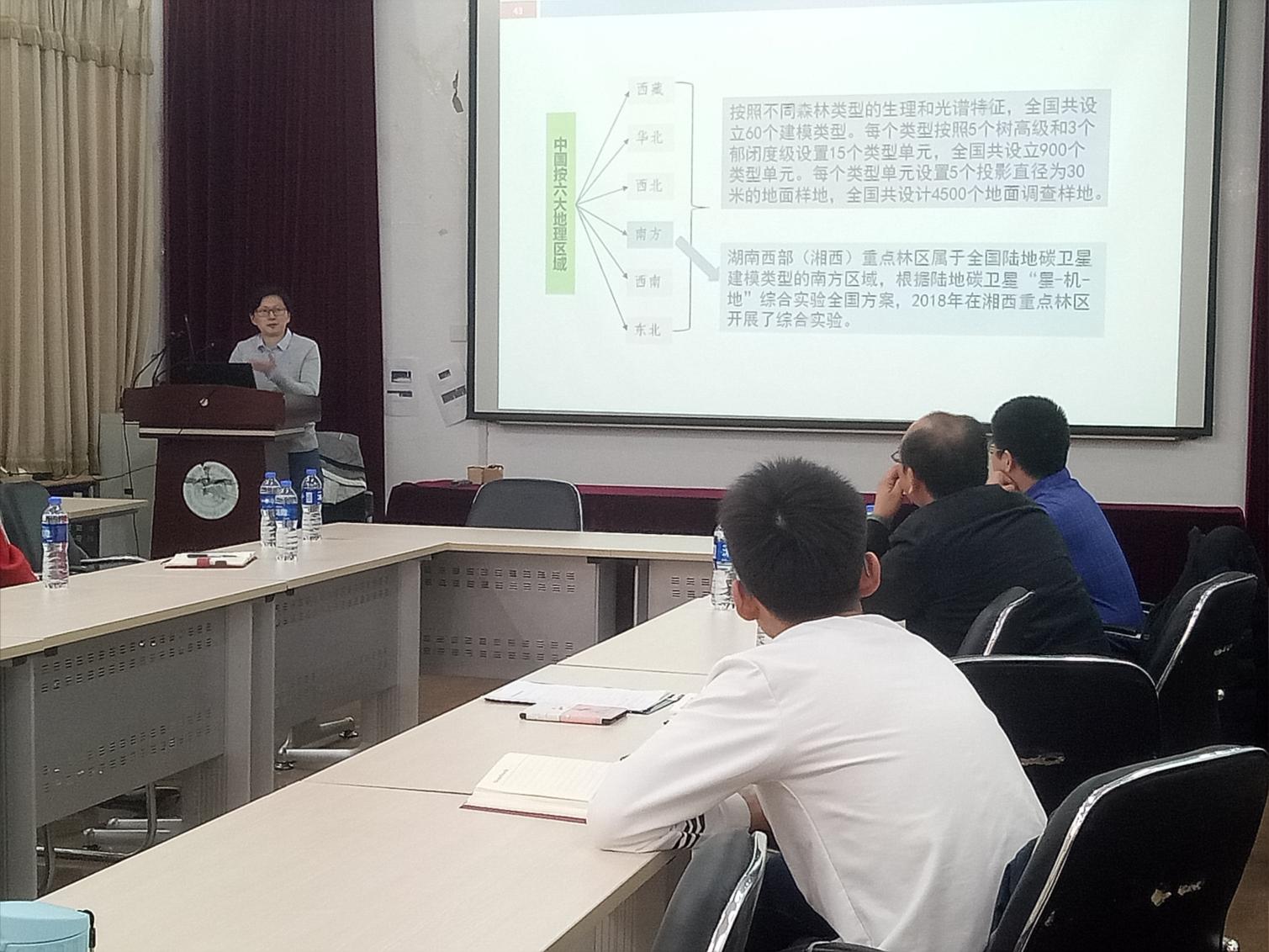 报告结合黄文丽副研究员团队的相关研究从美东北方森林站点分析、美东与美西郡州区域分析和中国湘西典型森林区分析等几个方面,从站点尺度到区域尺度就森林的碳储量进行了深入的探讨。报告提问环节,各位老师和同学分别就森林生态系统生物量的计算、生物量的反演是否包括地上部分和地下部分、“星-机-地”综合实验方法以及在基于机载或星载雷达数据估算树高时,回波能量的强度信息是否参与计算等热点问题进行了提问,黄老师与在场的老师和学生进行了交流讨论,对提出的问题一一作了解答,现场气氛十分热烈,受到一致好评。