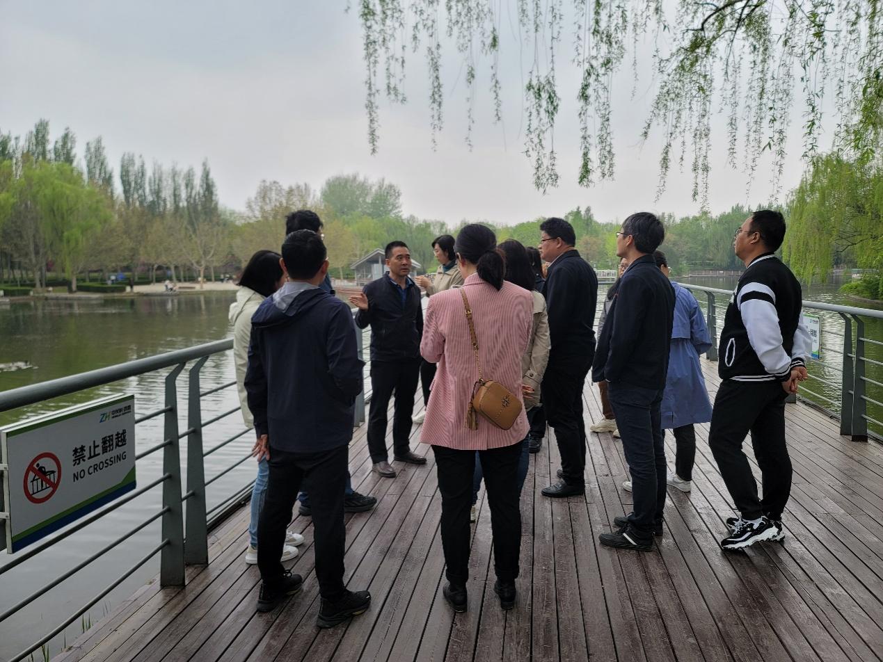 随后,实习队伍前往海淀公园,一个集生态、休闲、文化于一体的城市公园。琉璃神社 资源环境工程博士生薛晓宁分享了海淀“三山五园”地区的海绵城市规划设计经验。在她的示范下,师生们对海淀公园的规划设计原则进行了深入探讨,对城市绿带在提升城市生态环境质量中的重要作用有了更为深刻的认识。
