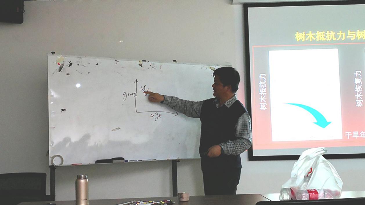 讨论及问题解答环节中,张齐兵研究员与在场师生就树木年轮研究的技术和热点问题进行了深入的讨论,并对所提出的问题进行了耐心的解答。现场气氛十分热烈,受到一致好评。最后,江源教授对讲座进行了总结,并对张齐兵研究员致以衷心的感谢。