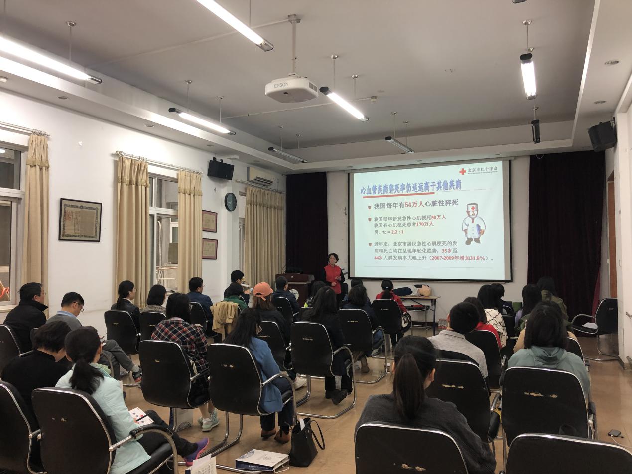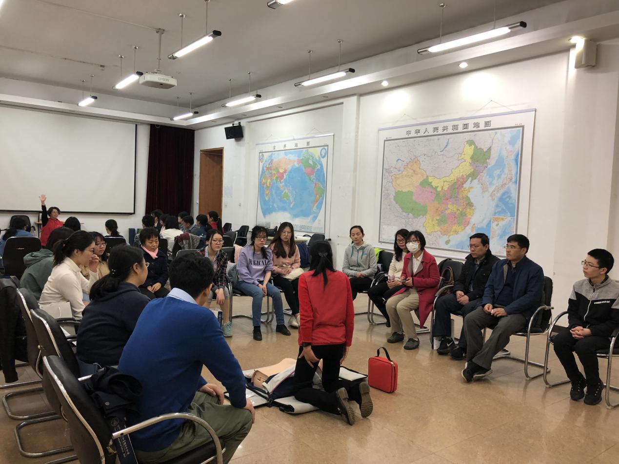 4月20日,由琉璃神社 工会主办、团委协办的师生急救知识和技能培训在生地楼180会议室开展。本次活动邀请到北京市海淀区红十字会的杨沙娜、贾晓华两位急救培训师前来为30名学部师生现场教学。