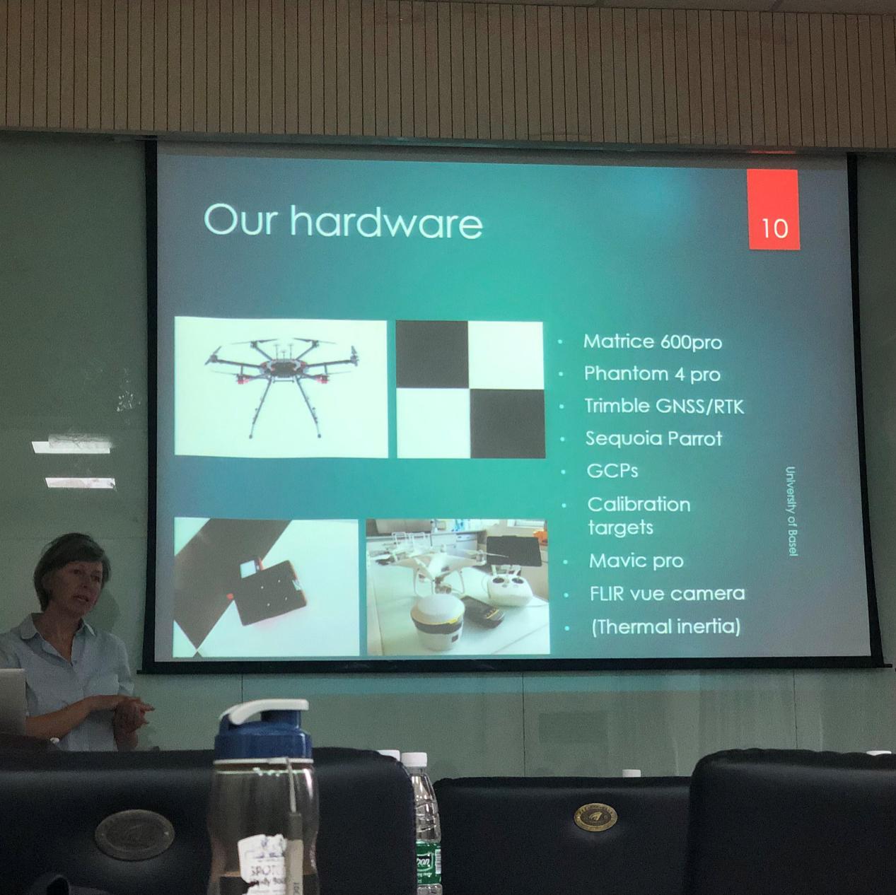 Brigitte Kuhn女士详细说明了使用无人机进行水土流失定量监测的硬件要求、大致步骤与注意事项,并以瑞士土壤侵蚀热点调查和南非Karoo地区溃坝后土壤侵蚀、沉积与植被覆盖情况调查为实例补充介绍了无人机在其中的应用,最后介绍了Pix4d软件处理无人机影像的注意事项。