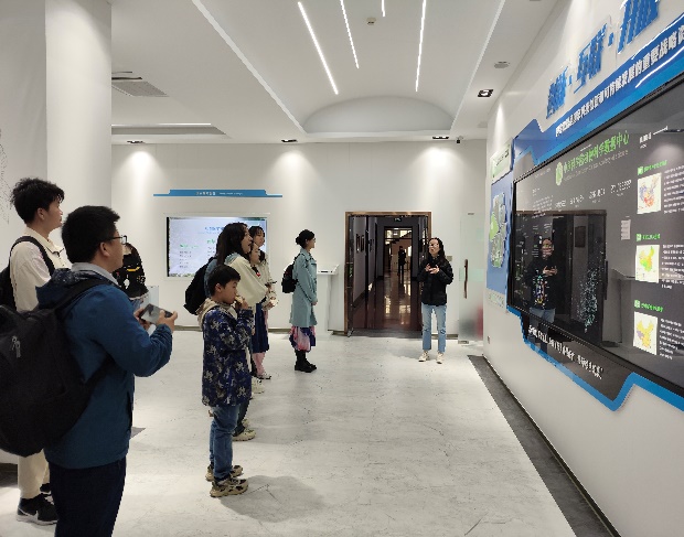 随后,大家参观了中科院植物所科学数据中心,杨嘉洁老师向同学们详细展示了“植物物种全息数据库”“中华人民共和国植被图(1:100万)”,指出这是侯学煜院士、张新时院士等3代、200余位科学家历经30多年艰辛工作完成的科学成果。该图展示了中国植被的全貌,包括55种植被类型、960种群系类型和2000多种优势植物的分布。基于此数据平台,杨老师随机检索向大家展示了感兴趣区域的植被类型及典型物种特征,以及对应环境温度海拔等环境信息。还向大家介绍了基于此研发的“ 花伴侣”APP,这款软件能智能识别植物物种。这是同学们第一次见到“花伴侣”的后台展示,大家都表现出浓厚的兴趣。植被图的研制极大促进了植被生态学的发展,并将植被科学与相关科学联系起来,对自然资源管理、环境监测、基础研究和其他公共服务而言至关重要。