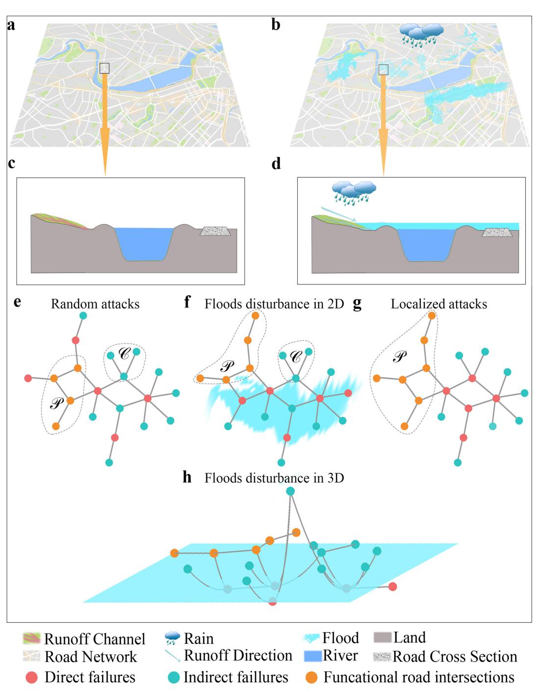 作为一种典型的关键基础设施系统,该论文以公路系统作为承灾体对象进行研究。该研究的难点源于洪水致灾因子与路网的三维特性的耦合:洪水对路网功能的影响过程中,路段和交叉口的高程起到了关键作用。而当前灾害风险科学和网络科学领域的已有方法并不适用于分析三维致灾因子影响下具有三维拓扑结构的网络的性能。