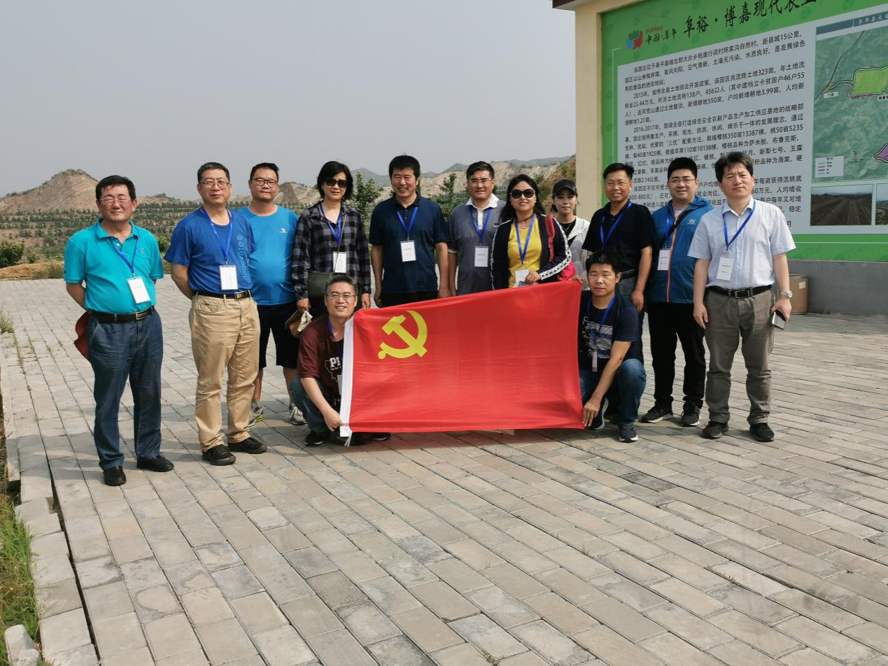 6月14日晚,教工党员一行乘车抵达河北阜平县。6月15日上午,大家实地考察了乡村振兴与精准扶贫示范区——阜平县大台乡陈家沟村现代农业园区建设项目。该项目通过土地流转方式,完成荒山土地整治,建设现代农业园区,给当地村民提供了就业机会,增加了农户的收入,使当地村民成为集底金、薪金、股金于一身的“三金”农民,稳定脱贫致富建小康。