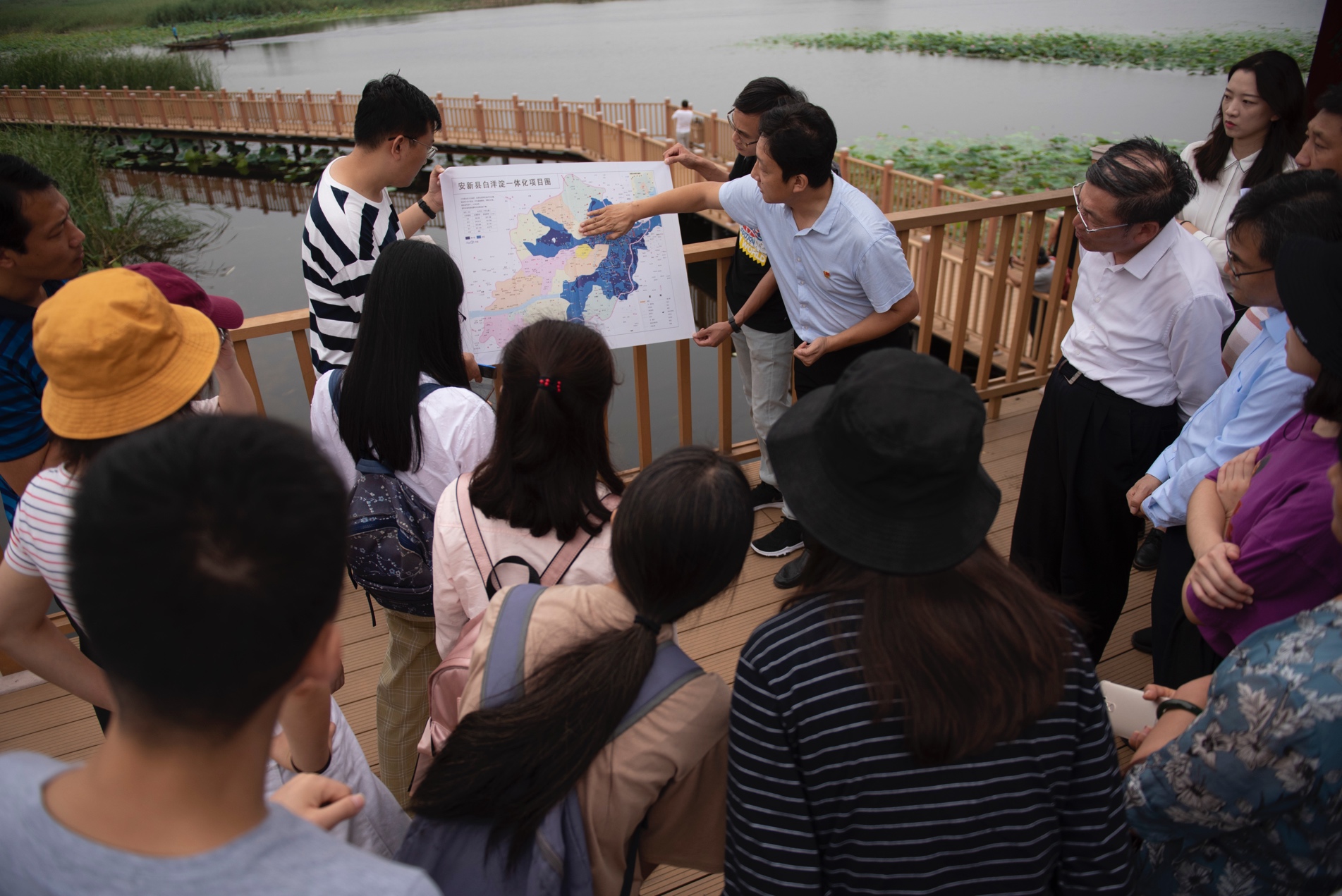 图1:考察团在雄安新区学习白洋淀水系规划