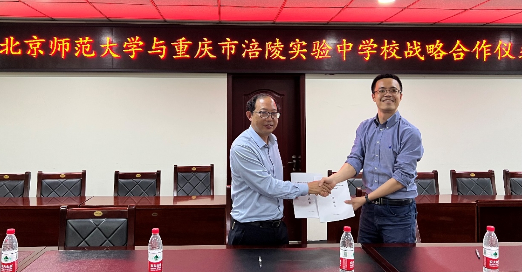潘峰华副部长与涪陵实验中学高川校长签订“优质生源基地”协议