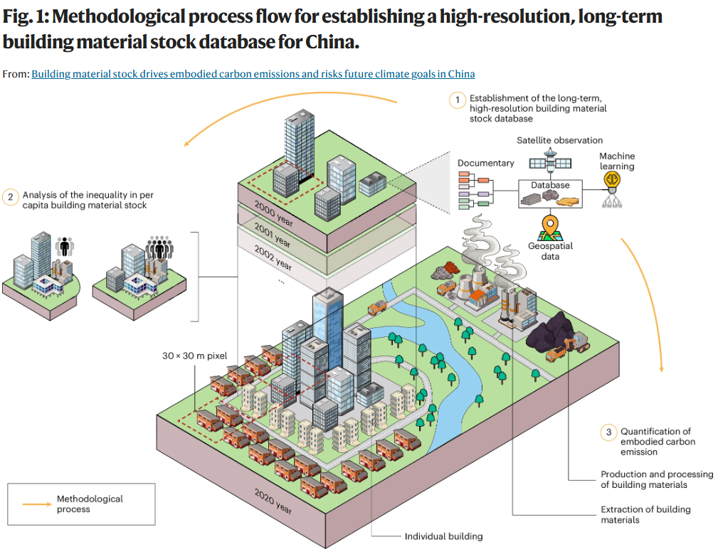 中国在过去二十年经历了人类历史上最为宏大的城市化进程,极大地改善了人均居住条件并推动了社会经济发展。然而,这一进程伴随着建筑材料的巨量累积,对全球资源与环境的可持续性构成了严峻挑战。随着建筑运行阶段能耗控制力度的加强,由建筑材料全生命周期产生的“隐含碳”在建筑行业总排放中的占比预计将显著攀升,甚至可能在2050年占据主导地位,成为制约未来气候目标实现的关键因素。然而,现有的全球或国家尺度研究多局限于粗空间分辨率或单一时间断面的静态核算,缺乏能够支撑长时序动态分析的高分辨率数据源。这种时空数据的匮乏使得中国过去二十年建筑材料存量的演变轨迹及其隐含碳排放特征依然模糊不清,导致在评估国家碳中和战略路径及可持续发展目标时存在巨大的不确定性与潜在风险。