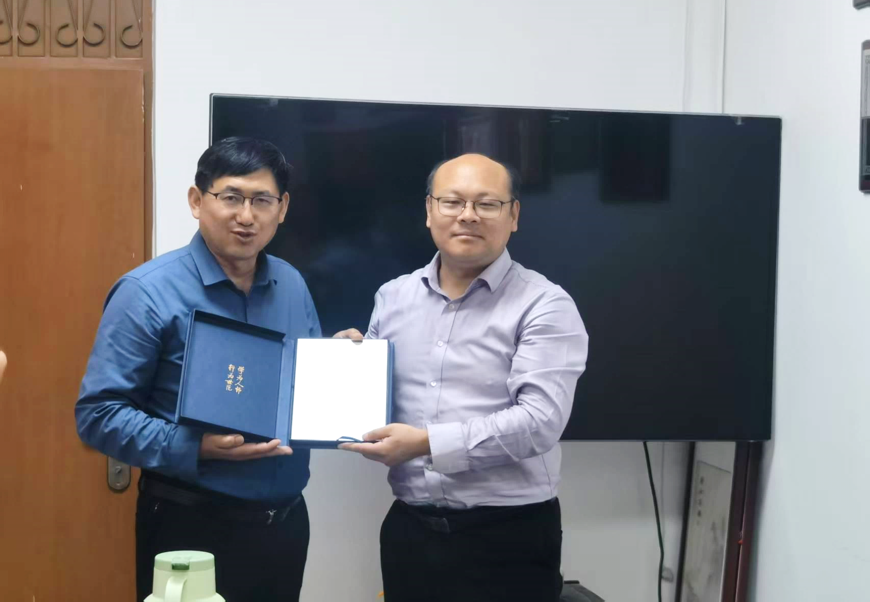 姜广辉教授与周伟院长互赠纪念品