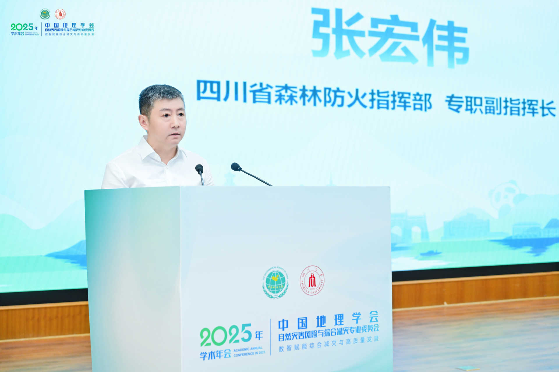 开幕式上,四川大学党委常委、副校长刘超,四川省森林防火指挥部专职副指挥长张宏伟,中国地理学会副理事长兼秘书长孙福宝分别致辞。刘超副校长代表承办方对与会专家表示欢迎,期待会议为区域安全与高质量发展贡献智慧。张宏伟副指挥长介绍了四川省防灾减灾救灾体系的建设进展,呼吁学界与政府深化合作。孙福宝秘书长强调,本次年会聚焦“数智赋能”,将为学科交叉与成果转化提供重要平台。香港赛马会及其慈善信托基金共同成立的公益慈善研究院内地首席代表陆怡先生出席开幕式。