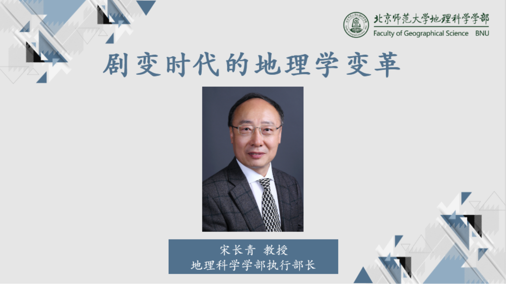 开幕式之后,学部执行部长宋长青教授以“剧变时代的地理学变革”为题为广大师生作本届文化节首场学术报告。报告围绕当今时代的特征、地理学的本质、地理学的未来发展趋势等方面展开。宋长青教授总结地理学发展的历史,在此基础上对新的社会发展时期中,地理学所面临的挑战,学科未来发展的趋势和重点方向做出分析。他指出当今时代是新的、智能的、变革的、数据的时代,是剧变时代(VUCA),剧变时代具有“复杂性”“多变性”“不确定性”和“模糊性”四大特征。地理学的学科特点能够更好地适应剧变时代的特征,地理人应抓住发展机遇,认真学习和思考学科如何发展的问题。宋长青教授从数据、方法、技术、科学问题和研究目标等方面,分析了地理学未来的发展趋势,并为地理学子们指出努力方向。最后,他强调说,我们现在正处于数据地理学时代,迎来了新的任务,有了新的研究对象、新的技术、新的数据,地理学的明天不再是单纯的学科研究,而应更加重视社会应用和服务,他鼓励同学们努力学好专业知识,为祖国和人民做出更多实际贡献。