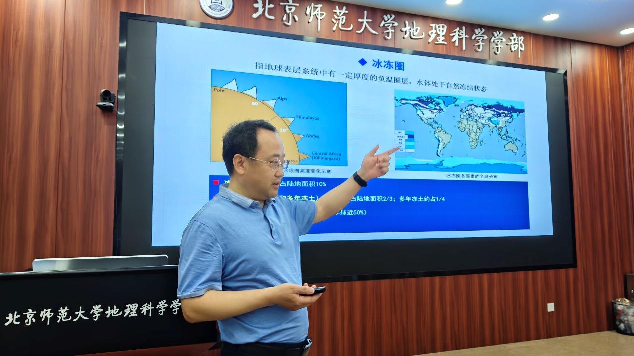 效存德教授作题为“一个新方向的探索之路:冰冻圈服务功能”的学术报告。报告中,效存德教授向大家介绍了冰冻圈的定义及其与人类的关联,并阐述了冰冻圈服务的定义与冰冻圈服务功能。接着,效存德教授分享了自己确定“冰冻圈服务功能”这一新颖研究方向的历程,以及据此构建的总体研究方案。随后,效存德教授从冰冻圈水资源供给服务、冰冻圈文化服务等角度介绍了现有的研究成果及应用情况。最后,效存德教授介绍了冰冻圈服务功能领域的研究在国际上的影响,并为未来的研究指明了方向、提出了新期待。