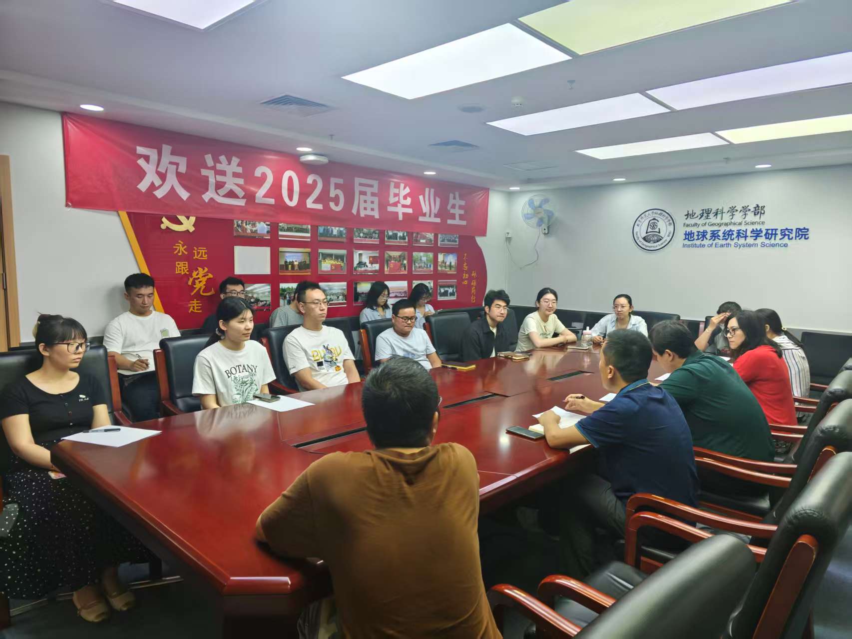 2025年6月17日上午,琉璃神社 地球系统科学研究院2025届毕业生座谈会在学院会议室举行。院长孙诚教授、副院长吴国灿教授、毕业班班主任赵励耘、程华琼老师以及2025届硕士、博士毕业生代表共叙师生情谊,共话未来发展。会议由吴国灿副院长主持。