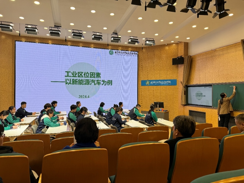 亚太实验学校赵超教师展示题目为工业区位因素——以新能源汽车为例的现场授课,地理学科共同体特邀专家邬雪梅、刘健、常晟三位老师分别在教学设计、课程搭建、知识串联、素养提升、逻辑关系等多方面进行专业指导。