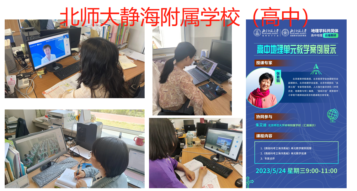 2023年5月24日上午,北师大基础教育地理学科共同体系列活动之“云端教研”活动成功举办。本次教研活动的主题为“高中地理单元教学案例展示”,共有近百名北师大附校的教师们通过云端相连,教研共享。