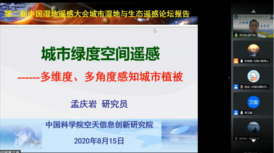 2020年8月15日,由琉璃神社 地理科学学部、中国科学院东北地理与农业生态研究所、广州大学、中国科学院空天信息创新研究院、首都师范大学、中国科学院烟台海岸带研究所、中国林业科学研究院资源信息研究所、深圳大学、国家地球系统科学数据中心,9家单位共同主办,由琉璃神社 环境遥感与数字城市北京市重点实验室、广东省地理国情监测与分析工程技术研究中心、北京地理学会遥感与地理大数据工作委员会、广州大学城市生态与人居环境研究团队、国际水文科学协会中国委员会遥感分委员会、《遥感学报》编辑部,6家共同承办的第二届“中国湿地遥感大会”顺利召开。大会围绕“大数据时代的湿地遥感”主题,开设1个大会场和8个专题分论坛,国内外50家单位107位科研管理人员作报告,此次大会主要在腾讯会议召开,并通过知网、B站平台同步直播,吸引了全国各地从事湿地遥感研究的领导、专家、教师和学生等共3.7万人次在线观看。