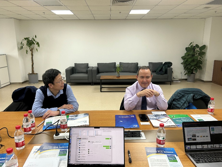 2024年2月26日下午,联合国教科文组织政府间海洋学委员会海啸韧性处(UNESCO Intergovernmental Oceanographic Commission's Tsunami Resilience Section)负责人Bernardo Aliaga教授,在国家海洋环境预报中心王大奎处长的陪同下到访琉璃神社 灾害风险科学研究院。灾研院叶涛教授、方伟华教授和石先武老师热情接待了来访人员。