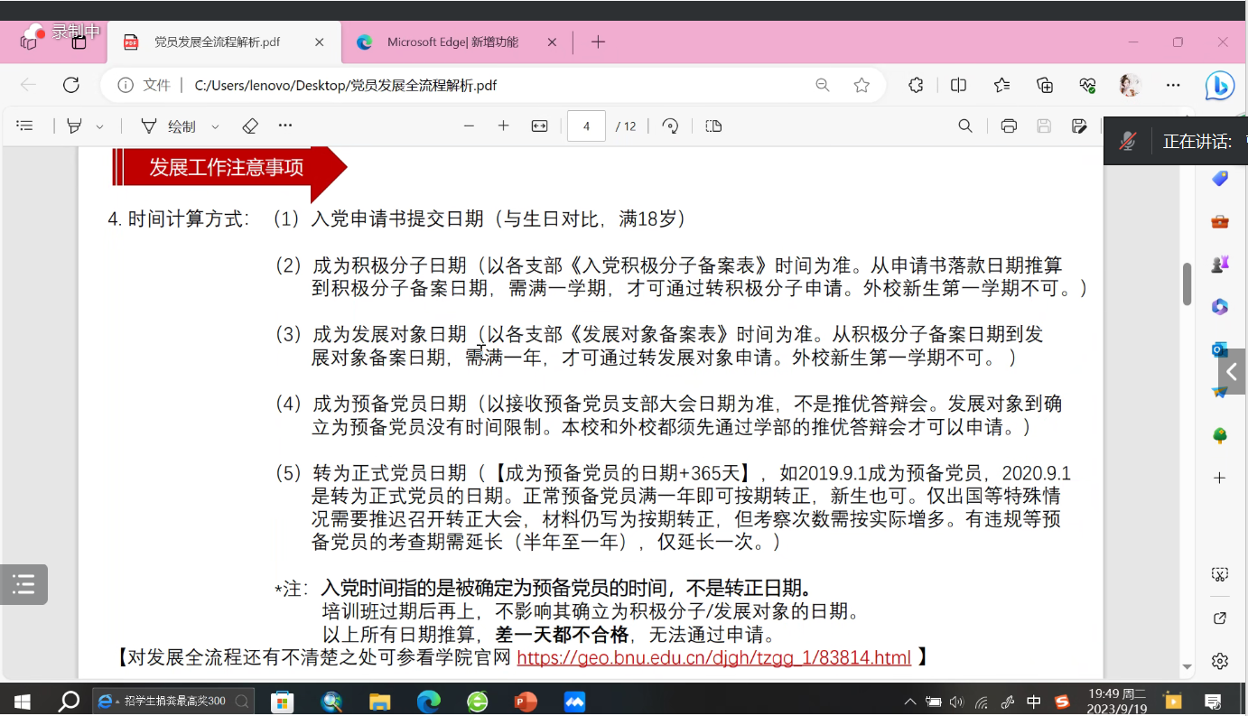 在经验分享和交流环节,来自自然资源研究生各党支部的曹婉钰、徐子涵、孟士婷、潘鑫豪、张童和韩旭为新生带来了与研究生生活息息相关的多个主题的经验分享,包括学院党支部的基本情况和入党流程、科研工作经历、教师资格证考试与中学教师职业发展、博士申请、公务员考试等。这些经验有助于同学们提前确定职业规划,做好充分准备。分享结束后,现场的老师和学生们围绕各主题分享进行了提问交流。
