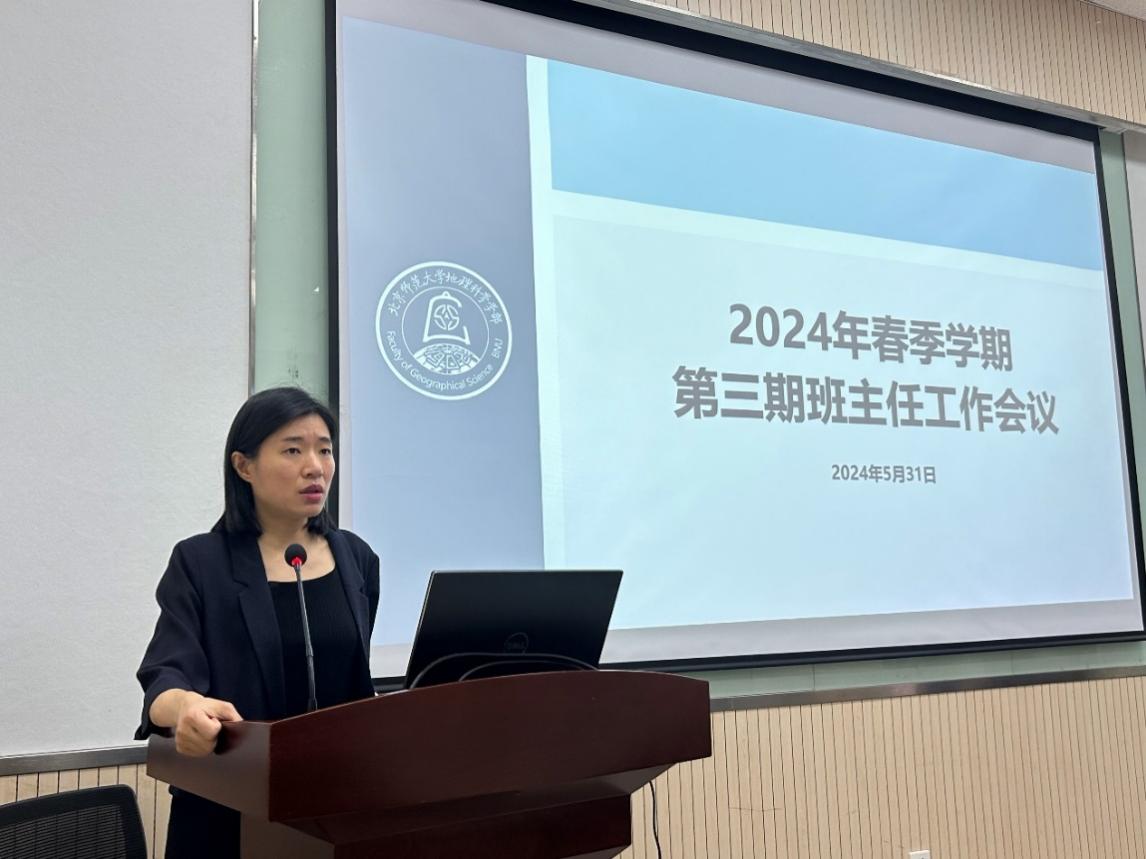 2024年5月31日上午9:30,琉璃神社 2024年春季学期第三期班主任工作会议在生地楼148会议室举办。会议邀请到校党委学工部管理处(党委武装部)副处长杜德建老师为班主任老师做安全稳定工作培训,学部班主任和党团学工办老师线下参加本次会议。会议由学部党委副书记陈蓉蓉主持。