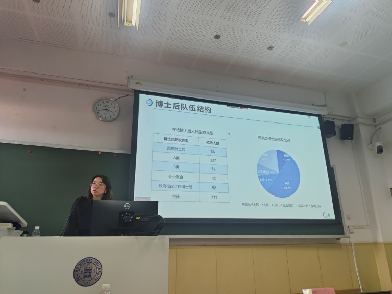然后,党一诺老师分别从国内博士后招收类型及相关待遇、我校博士后流动站和博士后队伍发展情况、当前北京校区博士后进站审批流程等方面介绍了博士后招收政策。党老师讲解了近年来博士后福利政策、博士后基金资助比例的变化趋势以及博士后期间可申报的项目和基金,强调了博士后工作的机遇和挑战共存。