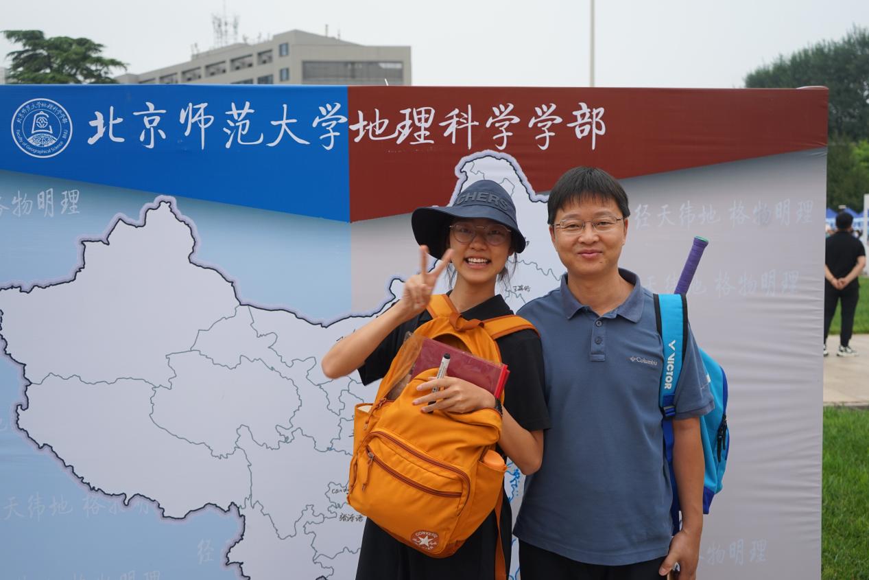 整个迎新仪式最引人注目的还属这张“地理迎新墙”啦!来自五湖四海的新生们纷纷在自己的家乡所在地签上了自己的名字,他们代表着自己的家乡,展现着各自的风采。萌新们热情地邀请自己的家人合影一张,手持“BNU地理人”、“未来可期”、“我爱北师大”等等标语,表明了对未来的期待,开启生活新篇章。