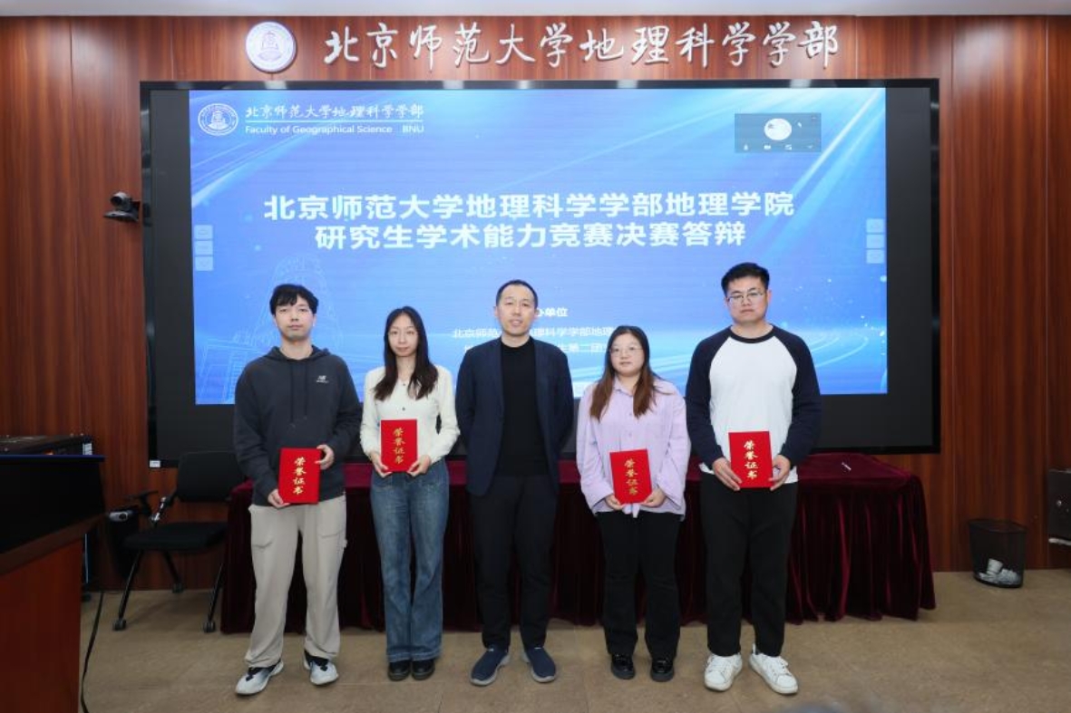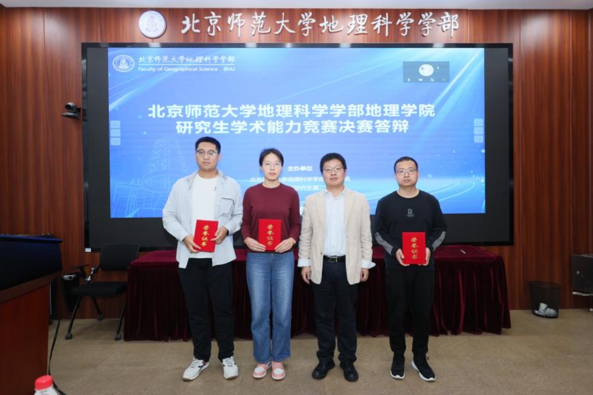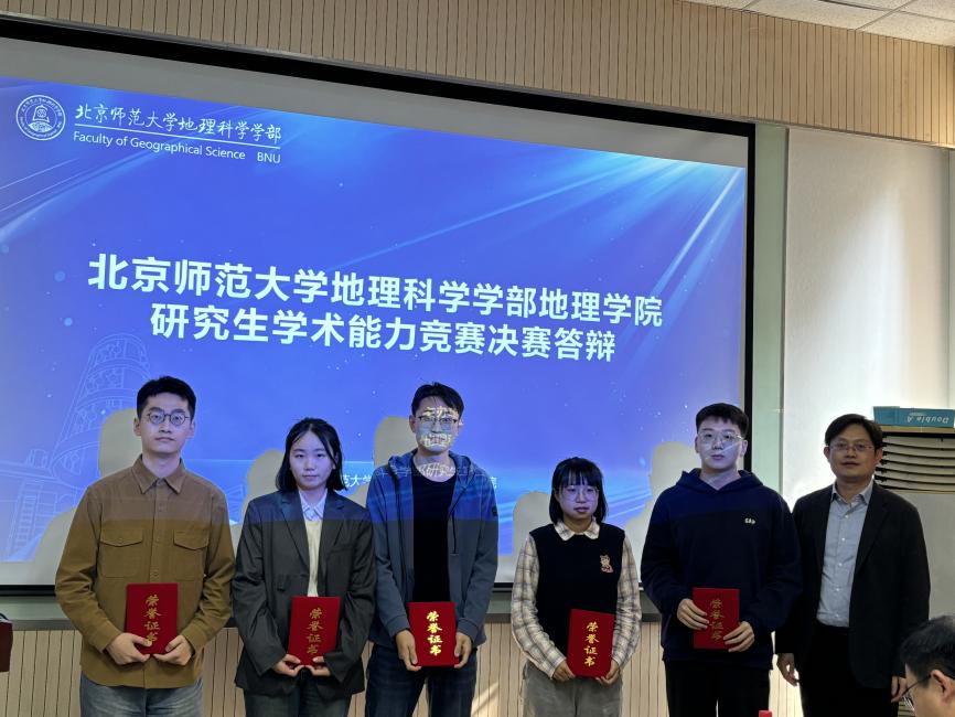 本次学术能力竞赛决赛评委有来自中国科学院生态环境研究中心的杨磊研究员、中国林业科学研究院生态保护与修复研究所的王锋研究员、中国水利水电科学研究院的万金红研究员、北京社科院的赵继敏研究员、中国科学院空天信息创新研究院的王福涛副研究员、中科院地理所的马海涛副研究员以及地理学院程杨教授、唐宏教授、宫阿都教授、张卓栋副教授、戴特奇副教授和杨扬副教授。程杨教授、宫阿都教授代表学院致辞,并分别主持博士组和硕士组答辩。