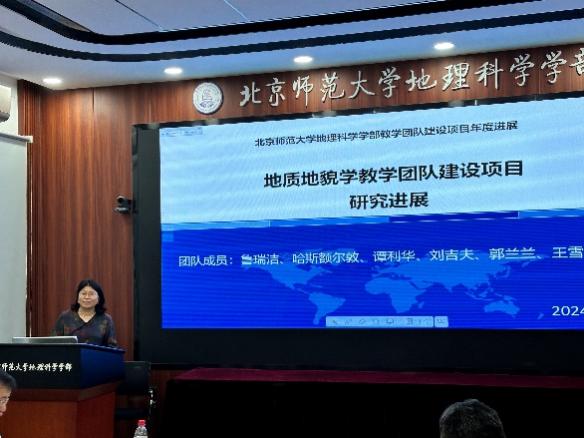 2024年6月12日上午,学部在生地楼180会议室召开了教学团队中期考核汇报会,对学部自2022年启动建设的8个教学团队的工作进行了审查。副部长周涛主持会议,特别邀请王静爱、刘慧平、葛岳静三位教学名师,学部教学指导委员会委员柏延臣、程昌秀、程杨,专业负责人王佩等担任评委。参加会议的有各教学团队成员,副部长潘峰华、本研教务秘书,以及前来学习观摩的学部教师。