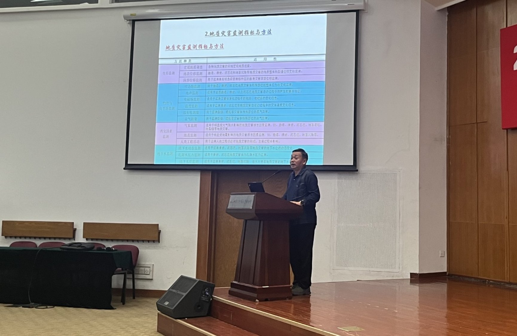 此次学术周活动的特邀主旨报告在5月7日上午举行。中国地质环境监测院周平根正高级工程师作了题为“地质灾害智能检测预警技术进展与展望”的主旨报告。报告由灾害风险科学研究院叶涛教授主持。在报告中,周平根工程师系统介绍了地质灾害调查评价和和监测预警研究工作的发展历程与当前最新进展,并从地质灾害调查评价、监测预警和治理方面,介绍了地质灾害防治研究的展望。