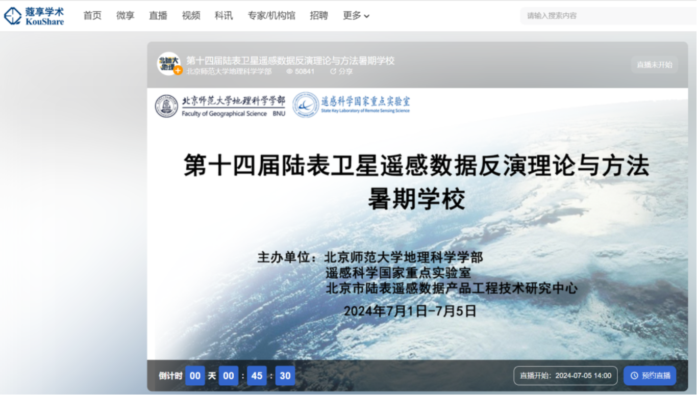 B站、蔻享学术和遥感学报微信视频号全网直播
