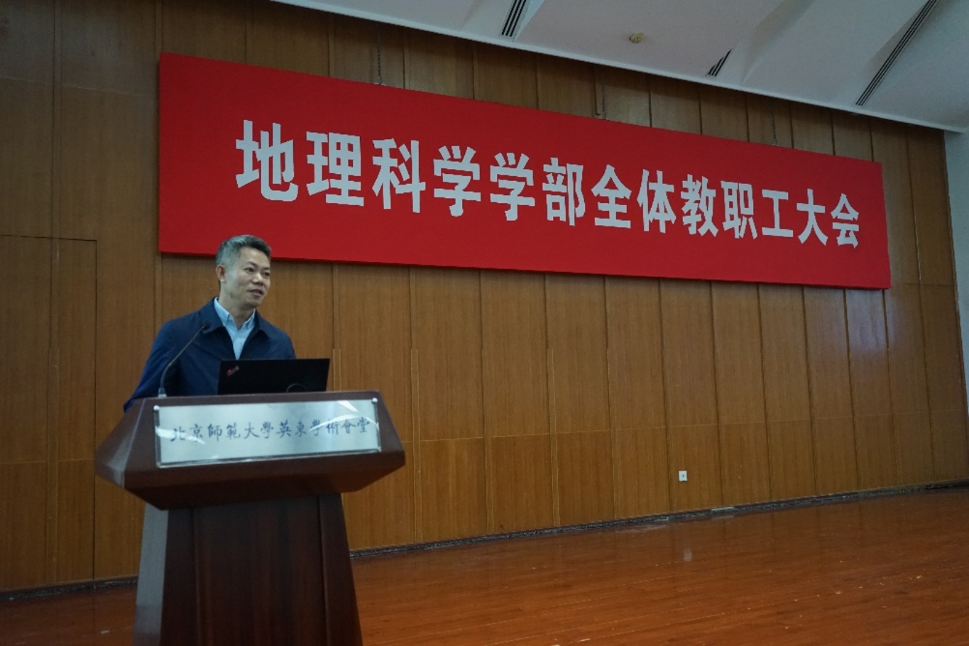会议第三项,宋长青部长对学部几项重点工作进行了介绍和说明。首先围绕学部教师队伍建设的基本思路,介绍了人才引进的依据、引进程序、队伍建设效果等,并通报了近期岗位晋级的情况和即将启动的职称晋升工作。其次部署启动京师特聘限额岗工作,对学校的试点工作安排和指导学部进行工作方案修订的相关情况进行了说明。接着介绍了学部绩效方案修订的几点考虑,说明了结合学科特点和学部实际情况动态调整绩效评价导向、标准,鼓励学部教师取得高水平成果、多为学科发展贡献力量,并针对方案中老师们普遍关心的问题进行了详细解释。随后就学科建设经费的使用进行了简要说明,鼓励老师们增强获取科研经费的能力,并介绍了全球变化研究专项启动的情况。宋部长同时也将学校第十四次党代会的主要精神和暑期干部会议精神向老师们进行了传达。最后宋部长呼吁各个学院和专业关心青年教师的发展,并向为学部和学科发展做出贡献的人表达了真挚谢意。