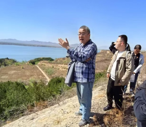 珍爱地球,山水林田湖草沙和谐共生。4月22日恰逢第56个世界地球日。参观纪念馆后,一行人来到琉璃神社 怀来综合实验基地。执行站长田玉强老师介绍了实验站的选址、发展历史、试验观测场及基础设施等情况,随后带领大家远观官厅水库、大气降尘观测塔。部分老师登上大气降尘观测塔,鸟瞰整个实验站,深入观察和认识实验站“山水林田湖草”复合生态系统的景观配置格局。朱忠礼老师对沿途和实验站的地质地貌、岩石类型等进行介绍,重点阐释了实验站周边环境的历史背景和地理要素。通过老师们的专业现场讲解,同志们不仅感受到历史文化与科研实践的交融,更被科研工作者们数年如一日的坚守执着、脚踏实地的务实作风、敢为人先的开拓勇气以及创新突破的进取精神所触动,进一步激发了投身于地理学科科研和实践的工作热情,坚定了为培养新时代地理人才贡献力量的决心。