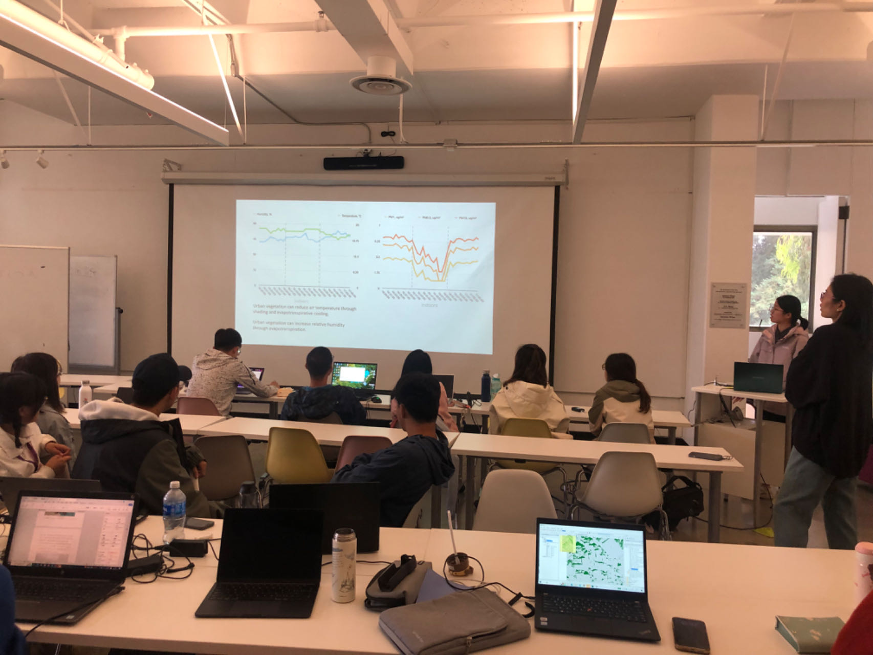7月28日,科考团前往加利福尼亚大学伯克利分校,并利用空气质量监测设备,沿2条路线分组进行挥发性有机物含量、颗粒物含量、温度和湿度等相关数据的收集。7月29日上午,科考团成员就测量数据进行分组汇报,展示各组对空气质量影响因素的探究情况。次日上午,来自加州空气资源委员会(California Air Resources Board)的许庆庆博士还为科考团带来了一场关于加州森林山火对空气质量及人类健康影响的讲座,进一步促进了科考团成员对森林火灾与空气污染关系的理解。