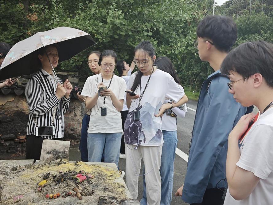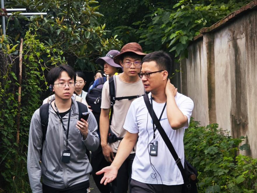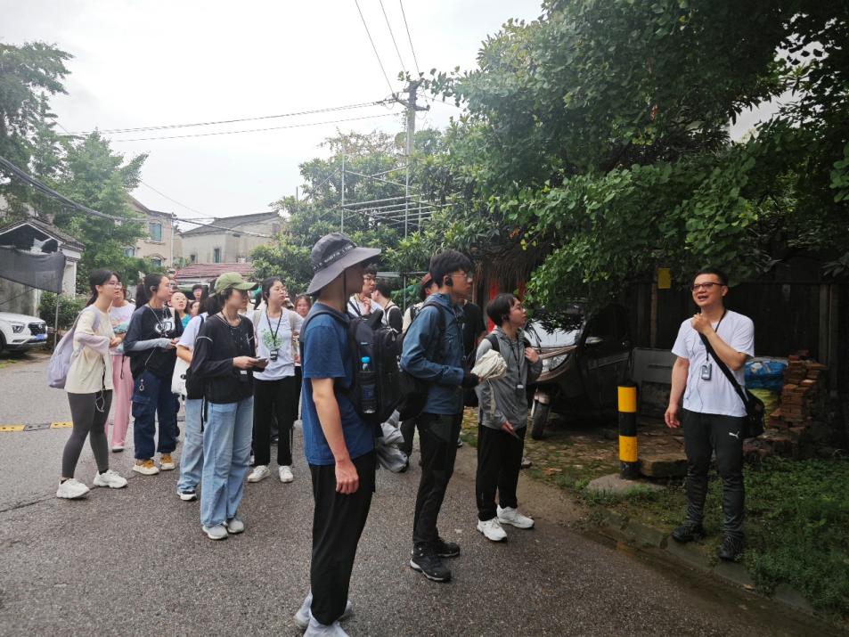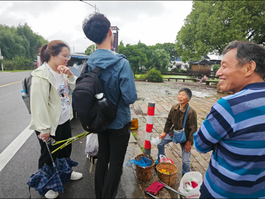 上午,学生们在周尚意教授、朱华晟教授的带领下进行东山镇水平实习。在当天的实习中,老师们引导学生观察地理要素,思考要素之间的空间关系和土地利用的主体,让学生掌握“找要素、看关系、做评价”的人文地理野外实习方法。周老师以相对稳定的要素作为标志,确定了白马庙、古尚锦、外婆桥等重要观察点,并在现场访谈当地居民,为深入理解要素间关系补充信息。此次水平实习中,学生们不仅在实地考察中加深了对人文地理学野外实习方法的理解,更在探索中增加了学科兴趣。