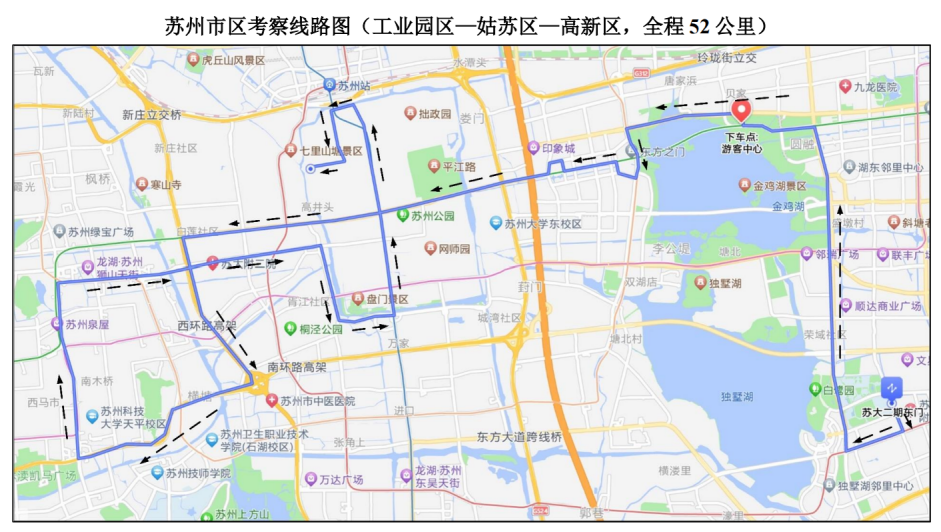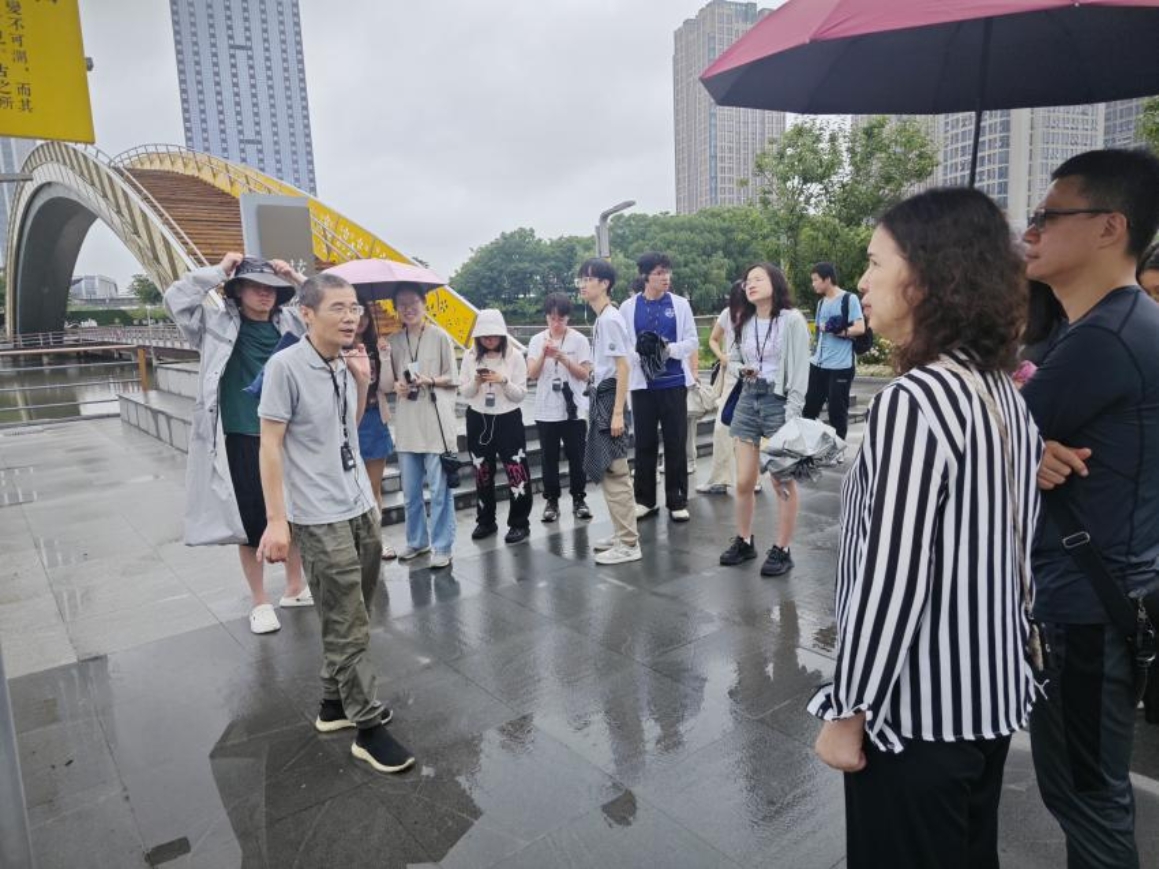 之后,王彬老师带北师大师生从苏州创意园到金鸡湖,从文化艺术中心到国际科技园,从中央公园到主城区,帮助学生们构建苏州市意象地图,提升对苏州的区域认知。