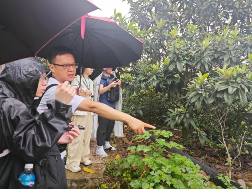 上午,学生们在朱华晟教授的指导下进行垂直实习。首先,朱老师结合东山镇农业发展现状,带学生们回顾了影响区域农业生产的区位因子。之后,朱老师带领学生深入山林,沿途观测东山土地利用的垂直分布格局。在山脚,东山农户的住宅以及道路两边以银杏、枇杷、桃子等果树为主;在海拔40米以下的山坡地区,农户主要种植枇杷、橘子、碧螺春茶等高经济效益的作物;海拔50米往上,低管理强度的杨梅、板栗等作物数量开始增多。在垂直实习中,学生们理解了在局地自然环境基础之下,市场、技术与制度等人文地理因素如何共同作用影响农户的生产决策。