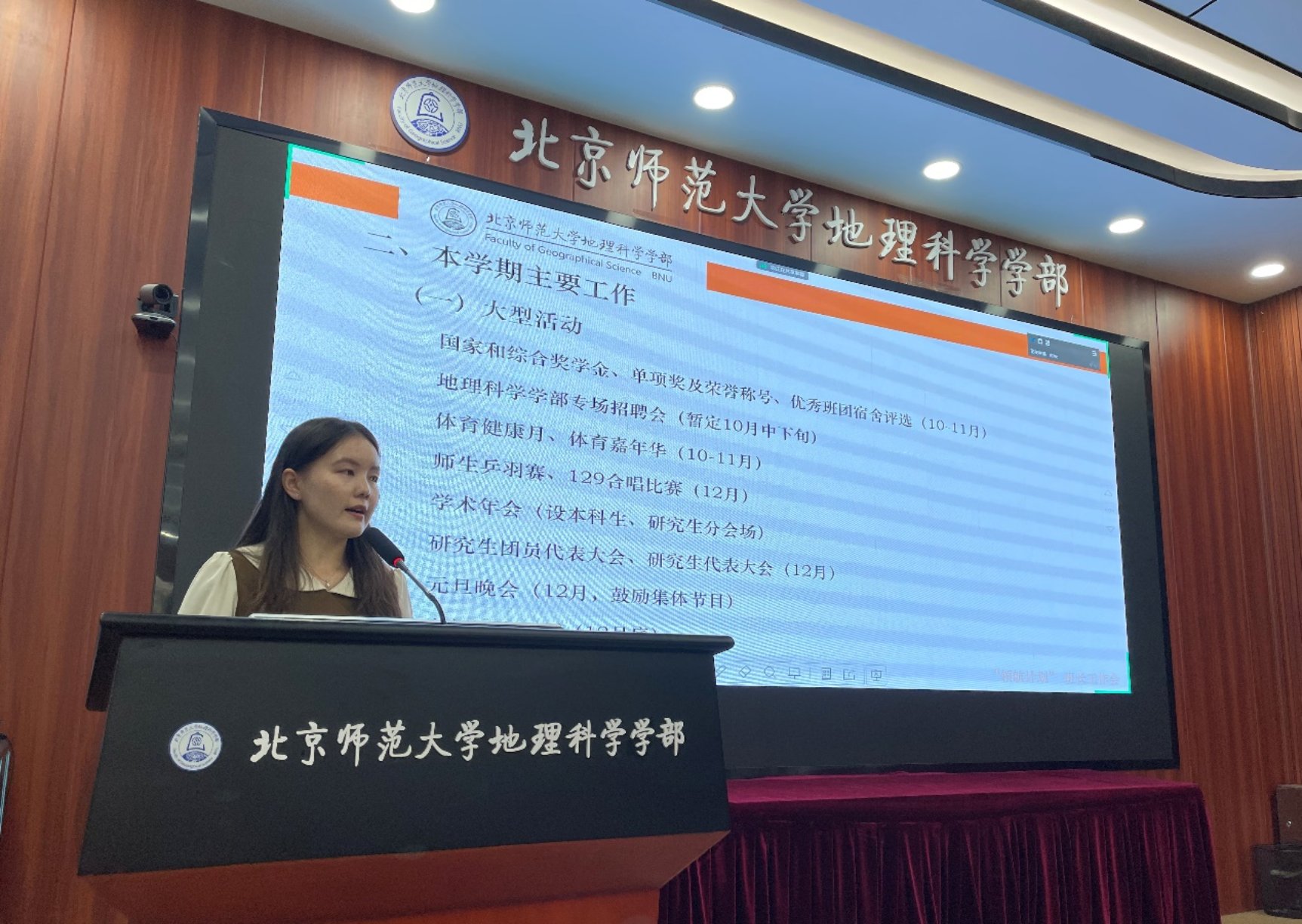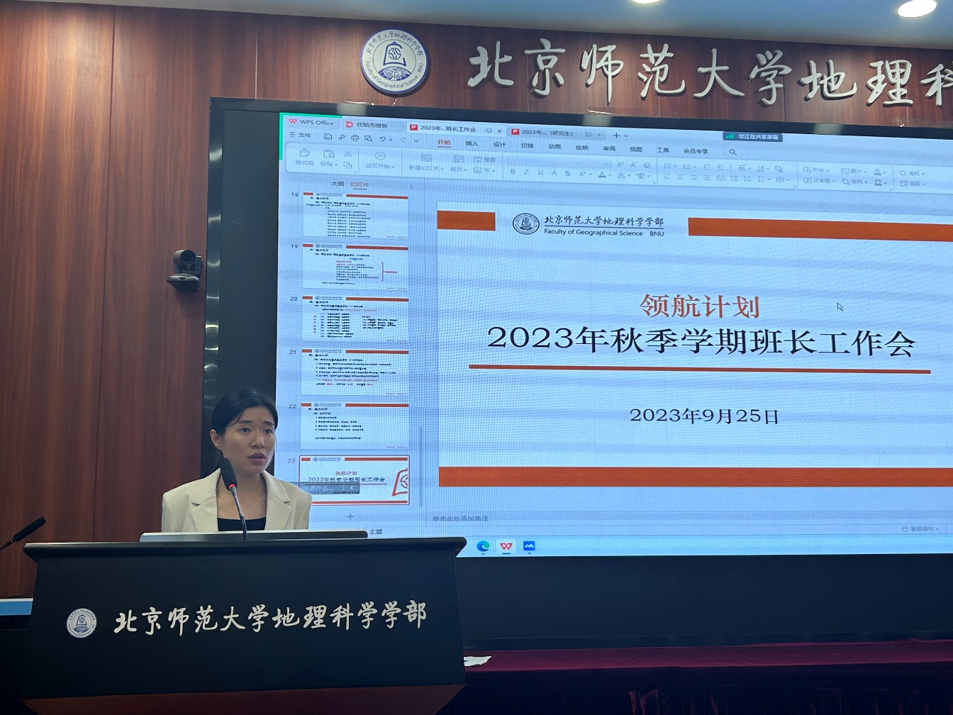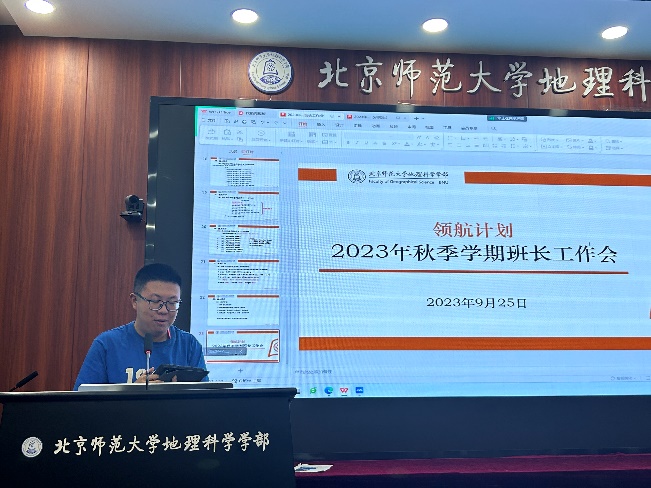 2023年9月25日中午12:30,地理科学学部新学期本、研班长工作会在生地楼180会议室顺利举办,工作会传达了本学期学校和学部对班级工作的各项要求,就学校的评奖评优工作做专项说明,并进行优秀班集体工作分享。学部党委副书记陈蓉蓉老师、党团学工办的辅导员老师和本研班长通过线上或线下的方式参加了本次会议,会议由余淅老师主持。