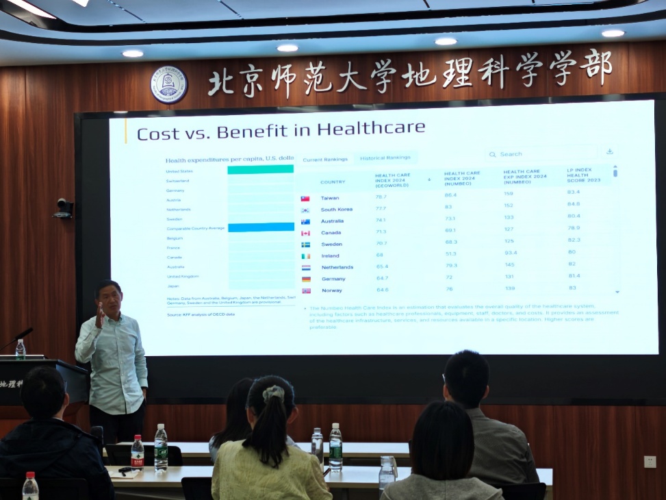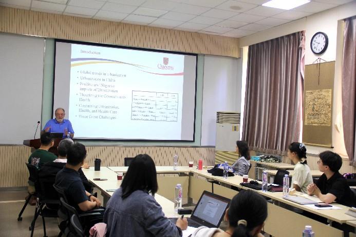 5月14日上午Rosenberg教授开展了“Urbanization and the Geographies of Health and Health Care”的讲座,分析了全球和中国的城市化趋势以及城市化的正负面影响,探讨了连接城市化与健康的理论和模型,并指出了城市化过程对居民健康带来的三大挑战。