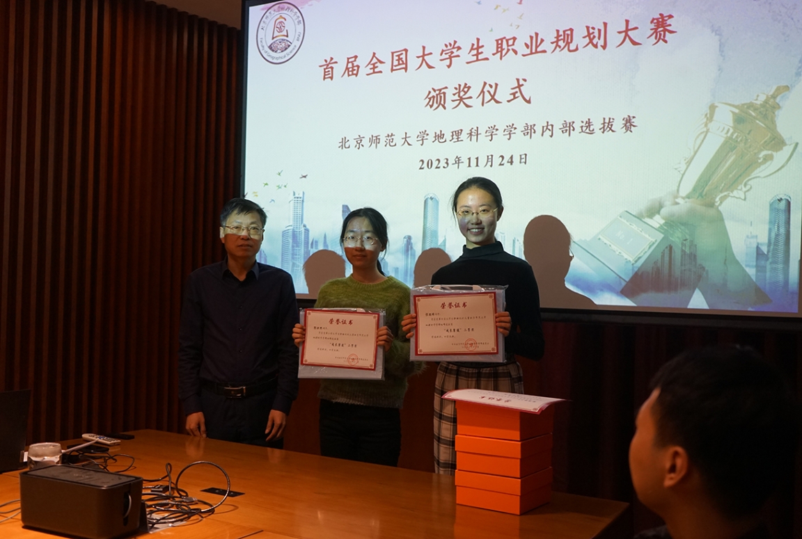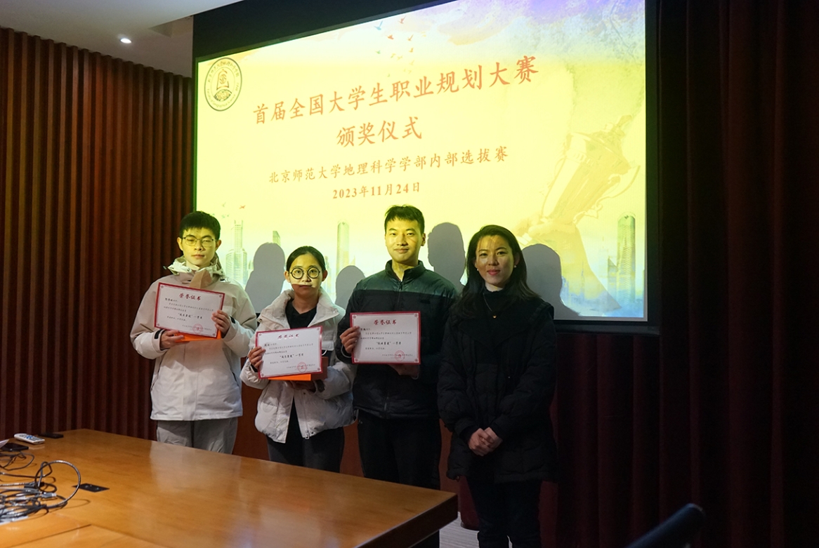 典礼最后,李骜老师总结道,本次比赛给同学们提供了很好的锻炼机会,帮助大家在既定的规则要求下回顾归纳过往、规划努力未来,希望地理学部学子能够在下一届及以后的比赛中,积极踊跃报名参加,同时也动员周围同学参与进来,持续思考和规划自己的学业和未来职业,在综合素质上不断提升,拥有光明美好的前景和未来。