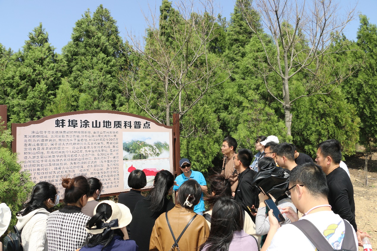 研而不学则浅,学而不研则空。从理论走向实践的地理实践考察,是地理教师专业发展的重要组成部分,更是地理学科实现品质建设与品质发展的必由之路。4月9日下午,全体学员齐聚涂山之巅,由北师大地理学科共同体学术委员会委员邱维理老师带领开展地理科学考察实践。邱老师从涂山地质地貌成因的角度为大家详细介绍了涂山的岩石类型、形成年代、地质历史演化、断层节理构造等知识。大家不仅收获了野外考察的方法和技能,更进一步认识了地理学科所需具有的严谨治学精神与求真务实精神。随后,全体教师前往怀远县城,探寻皖北地区保存最好、规模最大、中西合璧的清朝古建筑群,领略了不同时期人文地理及城市古建筑群的分布成因与分布形态。
