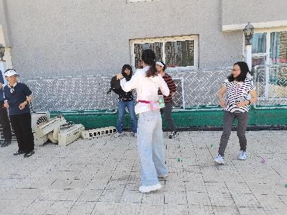 “公鸡下蛋”要求参赛者使用技巧和策略,通过跳跃、扭动和摇晃等方式,不借助外力抖出腰上塑料盒中的乒乓球,在规定时间内抖出乒乓球数多的队伍获胜。“筷子夹乒乓球”要求每位队员用筷子把乒乓球从桌子中间的盆里夹起,放在自己面前的盒子中,在规定时间夹起乒乓球数多的队伍获胜。“沙包投掷”计算投掷环数,分高的参赛者获胜。