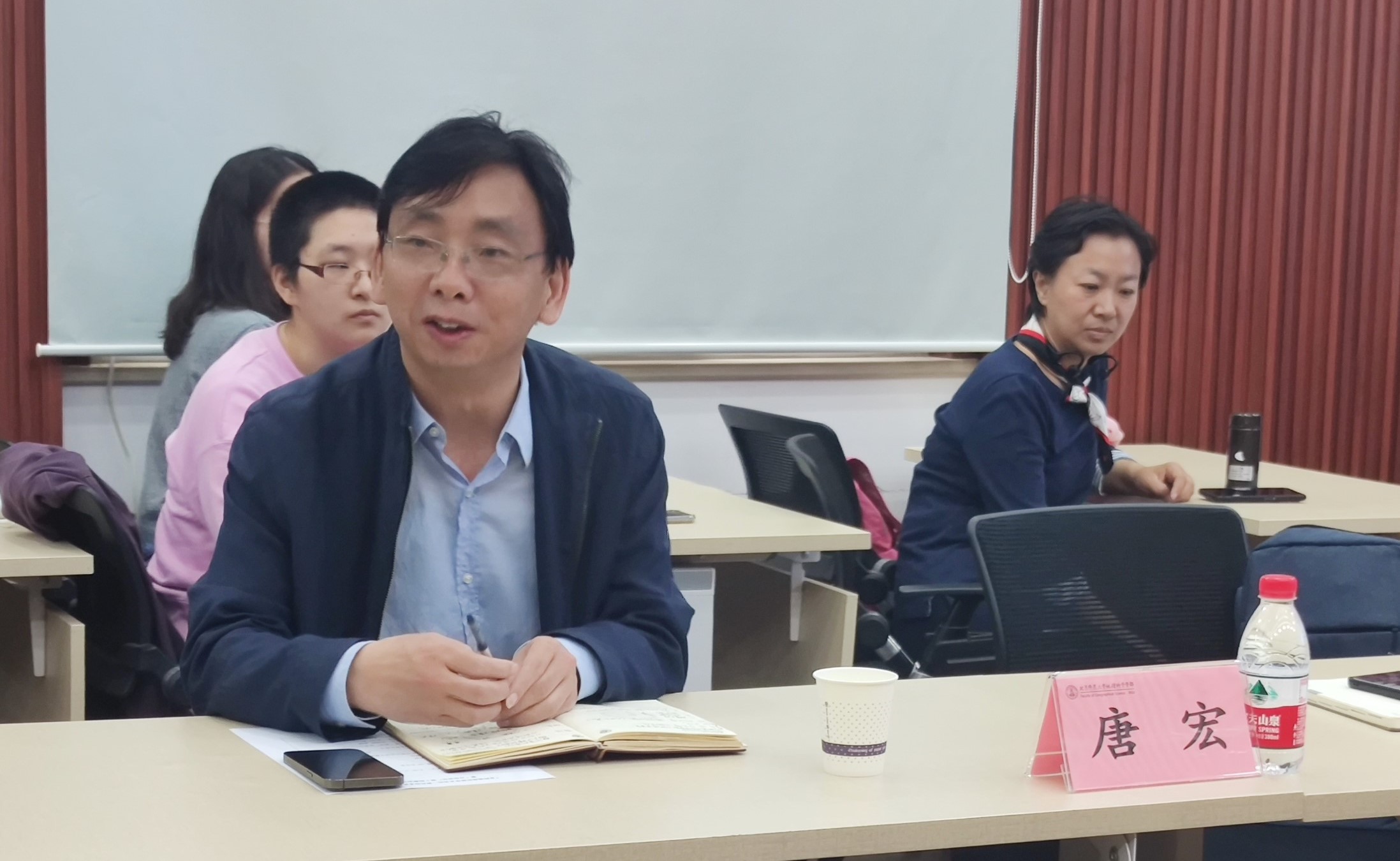 唐宏教授作为特邀嘉宾分享了个人思考心得。他谈到,当下人工智能在计算机视觉、语言建模等领域的模拟行为已经飞速发展,未来物理模型和机器学习模型走向融合的可能性是极大的。人工智能带来的便利和压力是同时存在的,一是对老师提出了更高的教学要求,需要重点思考如何引导学生、如何提升学习效果和能力。二是对学习内容的革新,是否将机器学习为代表的新兴知识作为基础必修课是值得探讨的话题。同时,唐老师对地理学和信息学的融合以及地理研究在人工智能领域发挥重要作用提出了展望。他表示,目前人工智能的海量信息来源并未关注数据所在的地理环境,而算法涵盖具体的时空概念才能真正走向现实世界。