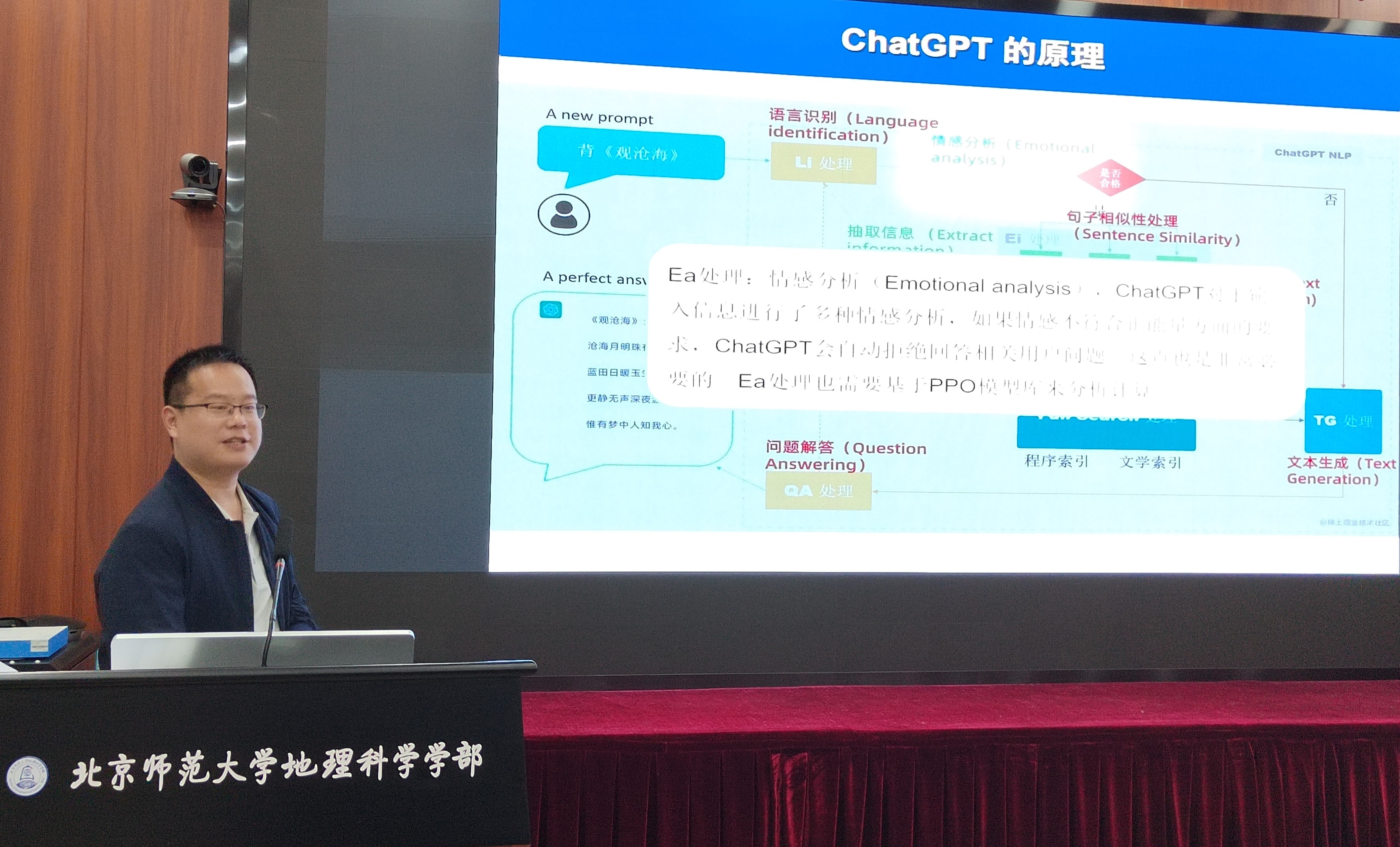 为贯彻落实琉璃神社 “互联网+教育”改革创新行动计划,探究并发挥人工智能技术在人才培养与科学研究中的作用,2023年5月5日上午,学部科研管理部门联合党团学工办,在生地楼180会议室举办主题为“人工智能新进展对地理学教研的机遇与挑战”的前沿讲座,邀请了杨晓帆教授、高培超副教授作主题报告,唐宏教授作为嘉宾进行点评与交流。讲座由蒋卫国教授主持,50多位师生现场参会交流。