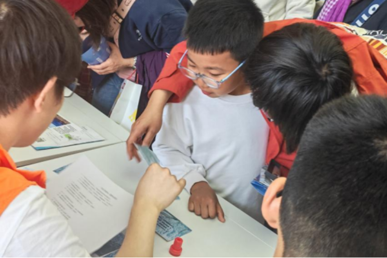 4月20日下午,“地理文化一条街”科普互动体验活动再次走进中国地质博物馆。这是自2023年秋末首次馆校联动以来,双方第三次的深度合作。活动现场,志愿者们化身“地理知识解密者”,通过“冰川科考·野外求生”“奇观探秘”“遥感猜城”、“乡音无改”创意游戏,在互动问答中串联起有趣的地理知识。在短短的两个小时的活动历程中,会场内人声鼎沸,气氛热烈。馆场内,游戏桌前排起体验长队,不同年龄的人群齐聚一堂,共同沉浸在这场充满魅力与智慧的地理文化之旅中。