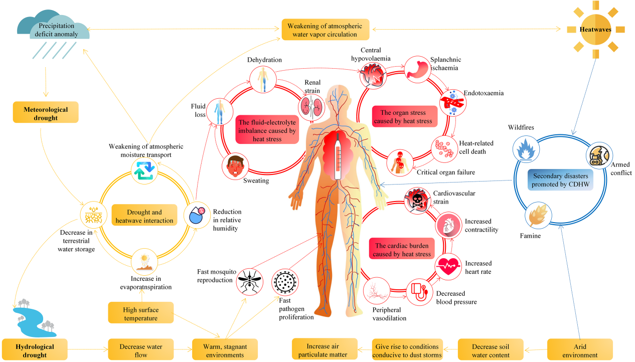 图1. 复合干旱热浪事件对人类健康的影响机制