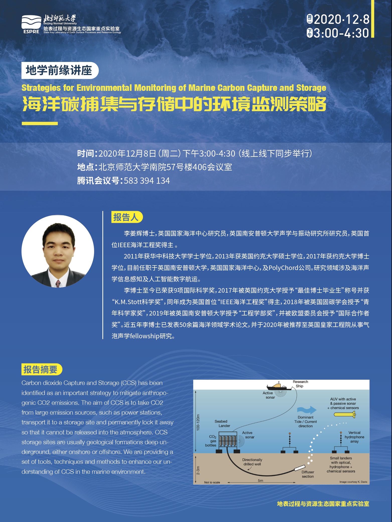 【12月08日讲座】李姜辉博士,海洋碳捕集与存储中的环境监测策略