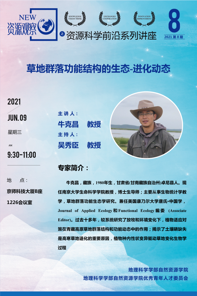 【6月9日讲座】牛克昌 教授:草地群落功能结构的生态-进化动态