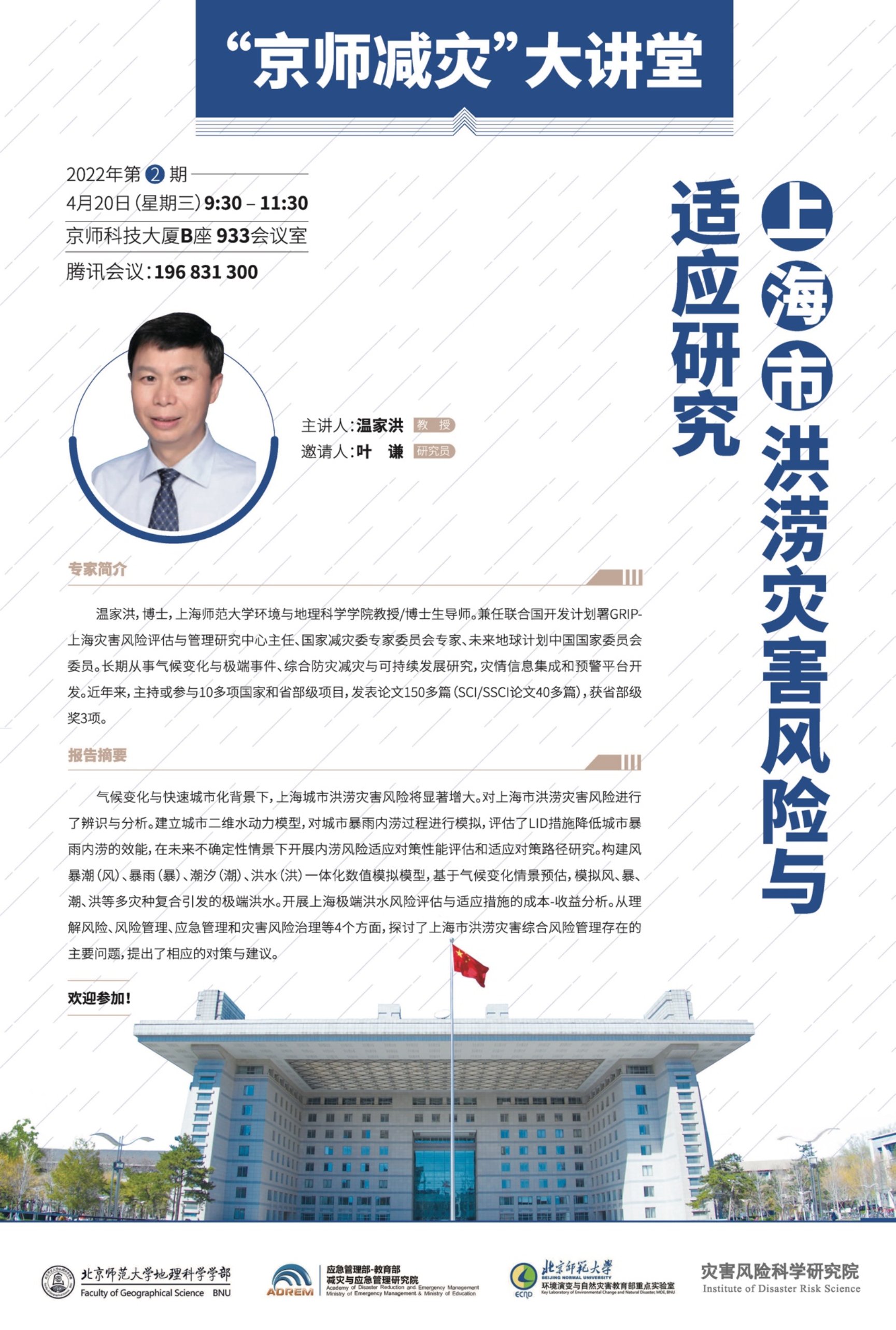【4月20日讲座】温家洪,上海市洪涝灾害风险与适应研究