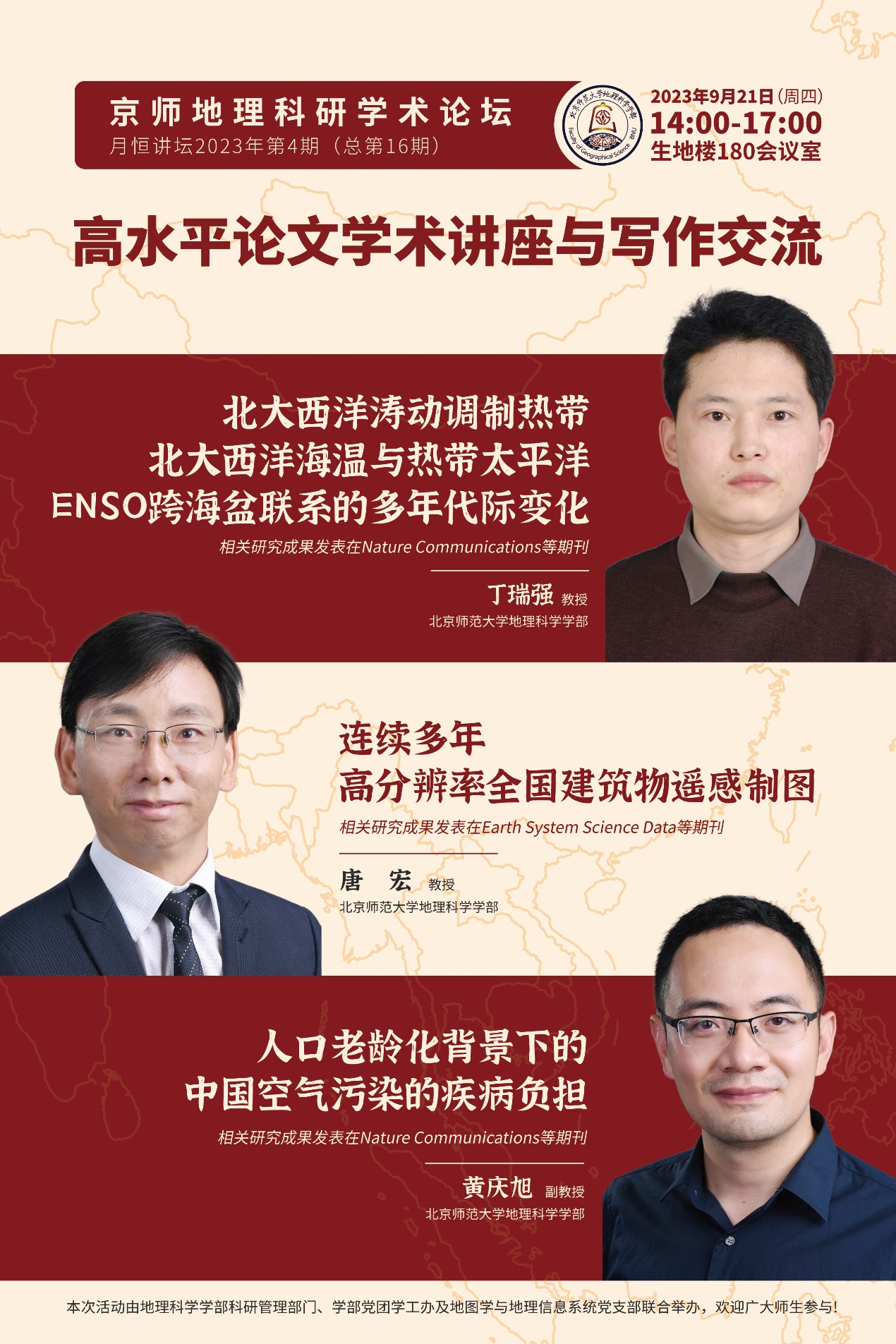 2023年9月21日(周四)下午14:00,“京师地理科研学术论坛—高水平论文学术讲座与写作交流”第四讲暨“月恒讲坛”第十六期将在琉璃神社 生地楼180会议室举行。