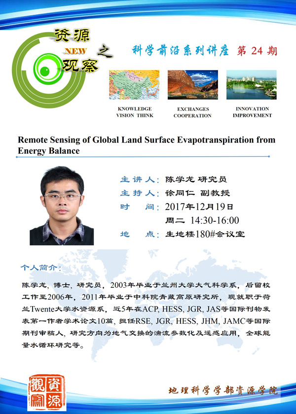 【讲座预告】资源观察之资源科学前沿系列讲座(第24期)