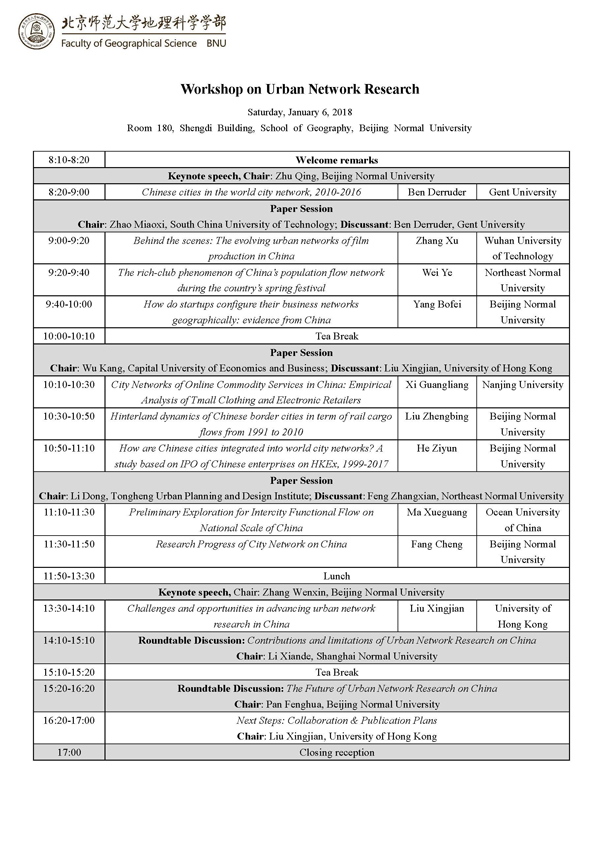 【讲座预告】城市网络研究学术研讨会