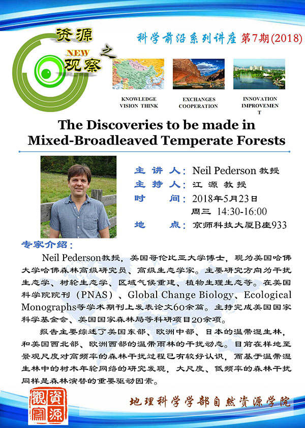 【5月23日讲座】Neil Pederson, The Discoveries to be made in Mixed-Broadleaved Temperate Forests